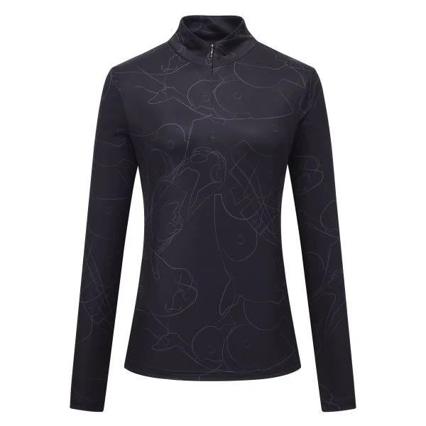Affichez fièrement votre passion équestre avec le haut ES-Avia au design unique et élégant. Son imprimé raffiné mettant en avant un motif délicat de têtes de chevaux offre une touche d’élégance subtile et sophistiquée pour toutes vos activités équestres. Sa coupe près du corps valorise harmonieusement votre silhouette, tandis que sa matière de qualité garantit confort et liberté de mouvement lors de vos entraînements ou compétitions. Laissez-vous séduire par le détail sophistiqué d’une tête de cheval finement brodée sur la manche gauche, synonyme d’exclusivité et de style signé Euro-Star.