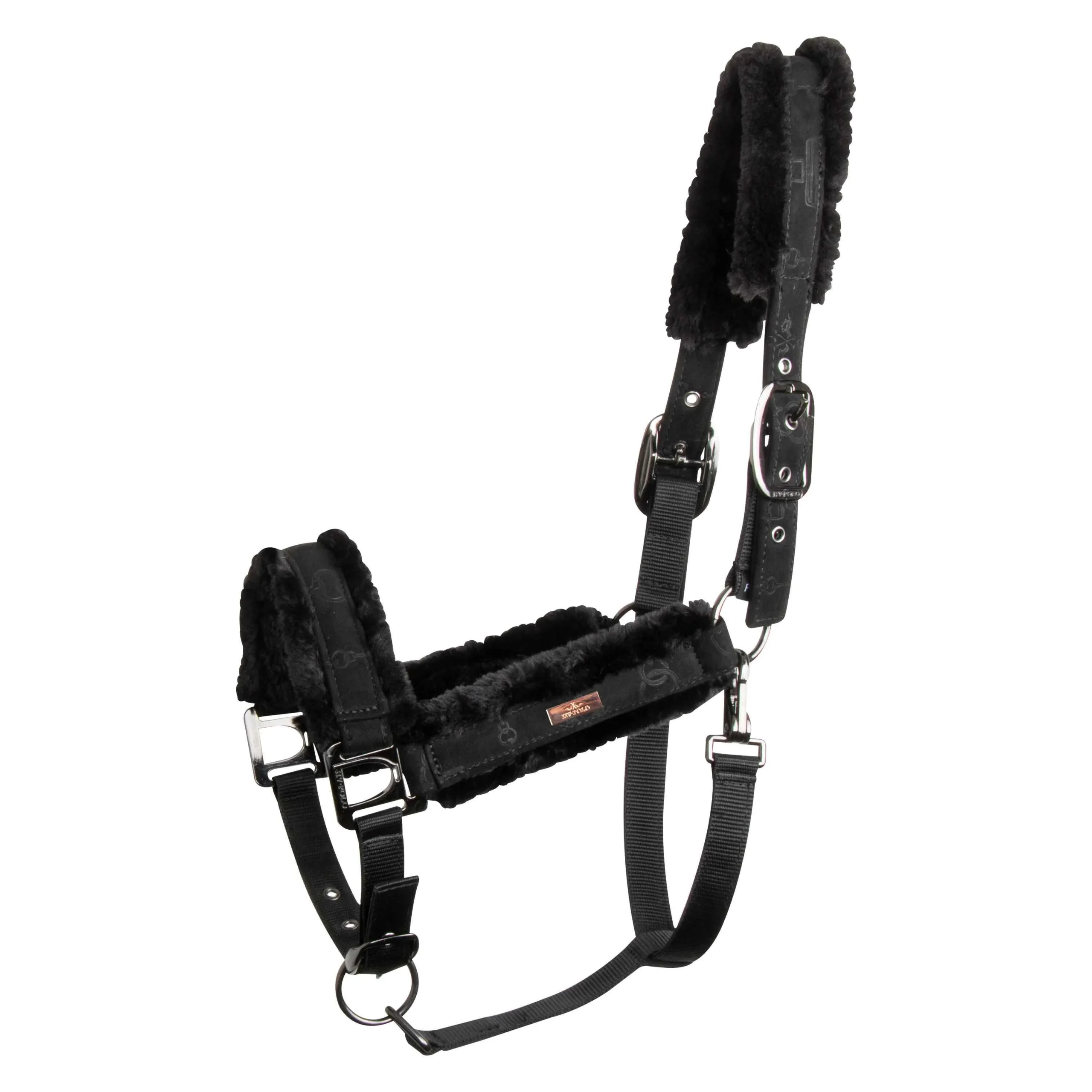 Collier avec broderie aztèque au niveau de la muserolle et des joues, pièce de tête et muserolle réglables et mousqueton.