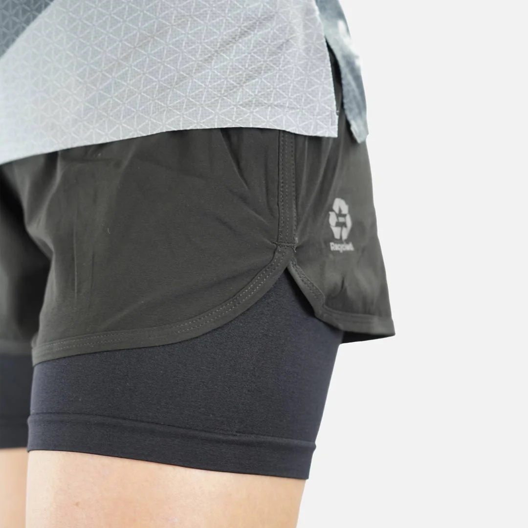 En plus d’être ultra léger (150g) le short de trail 2en1 est conçu pour être respirant et modulable !