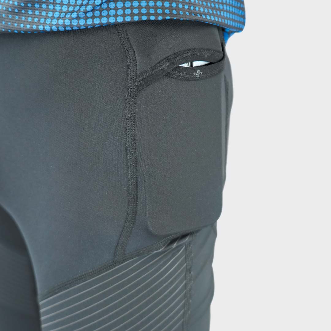 Pensé pour t’accompagner toute l’année, le collant R-Light associe trois matières techniques : chaleur ciblée sur le haut, compression légère sur les jambes, et mesh ventilé derrière les genoux pour rester au sec. Léger, respirant et à séchage rapide, avec 3 poches pratiques et des détails réfléchissants pour les sorties à toute heure.