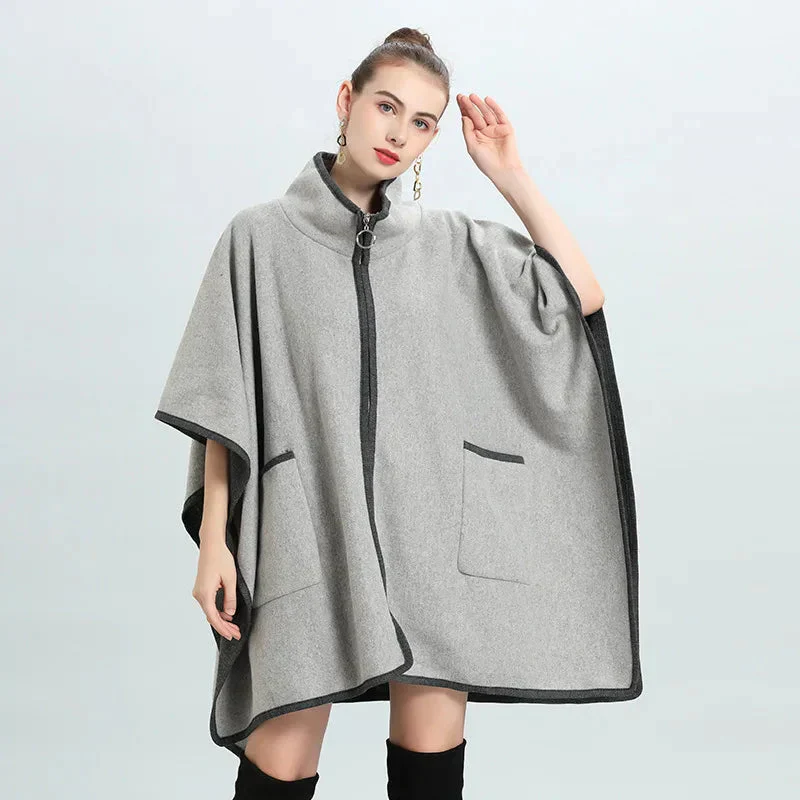 Poncho veste moderne et élégant à poches et fermeture éclair
